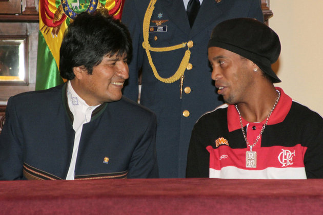 En attendant la confrontation, le Brésilien profite de son séjour bolivien, puisqu’il a été reçu avec les honneurs par le président.En effet, Evo Morales a profité de la présence de Ronnie pour lui remettre le prix du mérite sportif, soit la plus haute distinction sportive du pays andin. « Nous profitons de sa présence pour donner un peu de reconnaissance, avec respect, humilité et beaucoup d’admiration, à Ronaldinho, qui a porté haut les couleurs de l’Amérique du Sud en jouant dans des clubs européens » a déclaré le chef d’état.