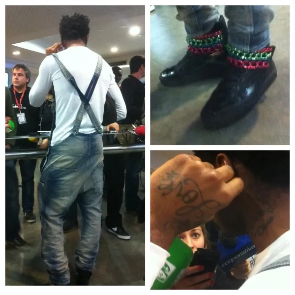 Déjà aperçu aux côtés du fantasque Dani Alves, il a décidé de frapper fort en zone mixte à la fin de la rencontre. L’ancien Gunner a sorti la salopette et des pompes noires assorties d’un scratch rose, bleu et vert.