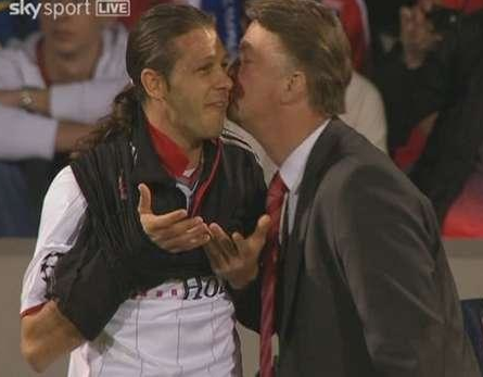 Avec 1 à 0 à la mi-temps, Louis Van Gaal pouvait voir venir et déjà profiter. Alors quand Demichelis chattait avec son coach avant de rentrer en deuxième, il a eu la surprise de recevoir un bisou sur la joue de sa part.Just like that.