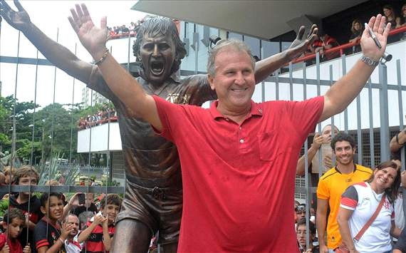 Le club de Flamengo a inauguré aujourd’hui sa statue à l’occasion des 60 ans de lancien joueur de la Seleção. Et on peut dire que le « Pelé blanc » l’a méritée. En seize années passées au club, il aura pris le temps de claquer 562 pions et de glaner quatre championnats et une Copa Libertadores.