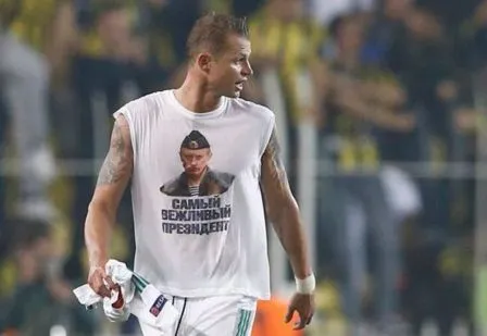 Après la partie de ce mardi soir entre Fenerbahçe et le Lokomotiv Moscou (2-0), Dmitri Tarasov, joueur de l’équipe russe, a affiché un T-shirt particulier en retirant son maillot. Une image du président russe Vladimir Poutine en tenue militaire y était imprimée, ainsi qu’une inscription en russe « le plus poli des présidents » . Cette phrase serait un jeu de mots en rapport avec les soldats russes partis combattre en Crimée et appelés « gens polis » au pays. On ne sait pas s’il s’agit d’une provocation envers la Turquie. En tout cas, cela n’a heureusement déclenché aucun incident au stade Şükrü Saracoğlu.
