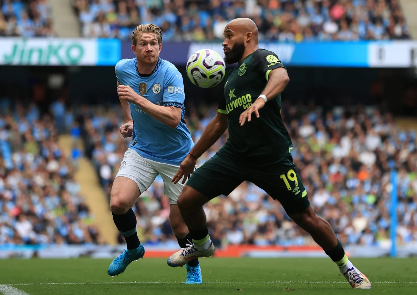 Buts : Haaland (19e et 32e) pour les Citizens // Wissa (1re) pour les Bees