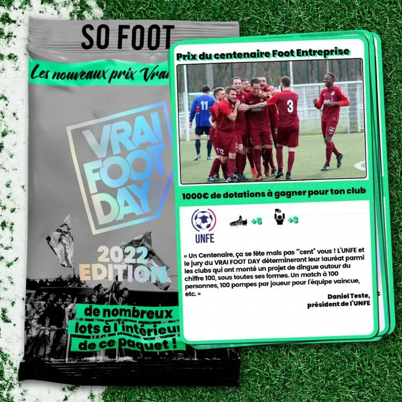 Pour le Vrai Foot Day, notre journée d’hommage, de fête et de mise en avant du foot amateur des 25 et 26 mars prochain (au départ l’événement était prévu les 24 et 25 septembre 2022 mais il a été reporté), et comme à chaque édition depuis 2020, So Foot et Yannick Cahuzac ne sont pas les seuls à vous proposer un grand et beau prix à gagner.