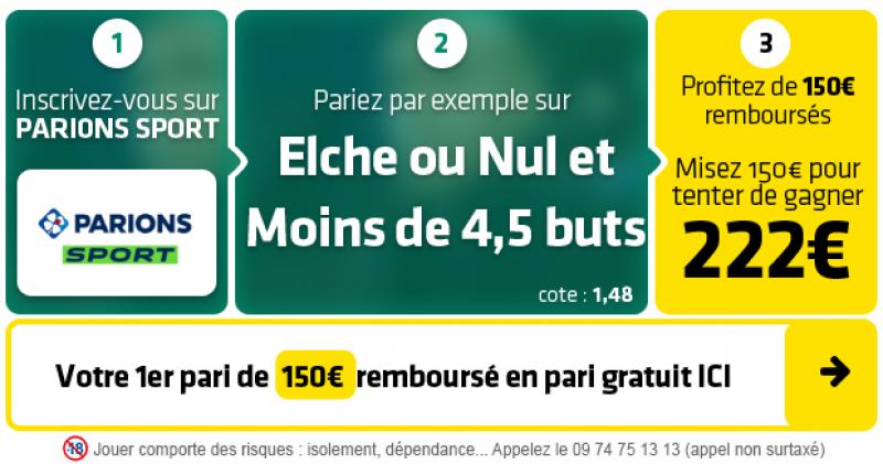 De son côté, le Rayo Vallecano avait réalisé une très belle 1re partie de de saison avant de retrouver son rang. Les Franjirrojos se trouvent en 11e position au classement avec 11 points d’avance sur Alaves. Les partenaires de Falcao restent sur 5 journées de Liga sans le moindre succès avec 4 défaites pour un nul. Depuis le début de saison, le Rayo se montre intéressant à domicile mais souffre en déplacement où il n’a remporté qu’une seule rencontre. Pour cette affiche qui lance la 25e journée de Liga, Elche devrait être en mesure de prendre au moins un point face à une formation du Rayo Vallecano pas au mieux et qui semble vampirisé par son parcours en Coupe du Roi. ► Le pari « Victoire Elche ou match nul et moins de 4,5 but » est coté à 1,48 chez ParionsSport En Ligne qui vous offre votre 1er pari remboursé de 150€