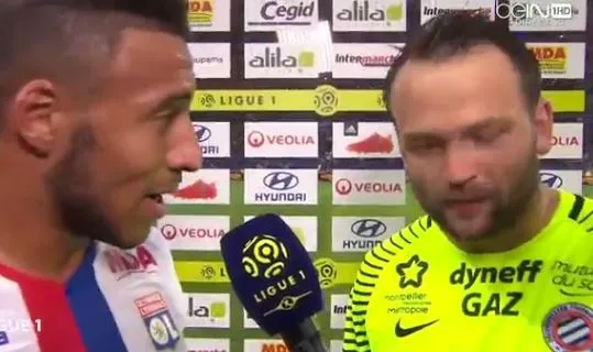Après avoir rapidement ouvert le score, son équipe a été réduite à dix contre onze suite à l’expulsion (8e) de Morgan Poaty coupable d’un tacle appuyé sur Corentin Tolisso. En supériorité numérique, Lyon a ensuite repris l’avantage grâce notamment à Tolisso. Alors que ce dernier répondait au micro de beIN Sports à la pause, Jourdren est venu lui demander des comptes en pleine interview…