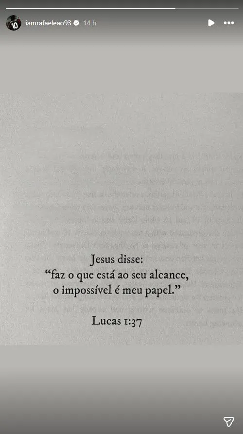 « Fais ce qui est en ton pouvoir ; l’impossible est mon devoir », cite mystérieusement le joueur du Milan dans une story publiée sur Instagram. Une punchline attribuée à l’ange Gabriel, si l’on en croit Luc dans le verset 1:37 de son Évangile (bien que la version française du verset, moins prolixe que la citation en portugais partagée par Leão, stipule simplement que « rien n’est impossible à Dieu »).