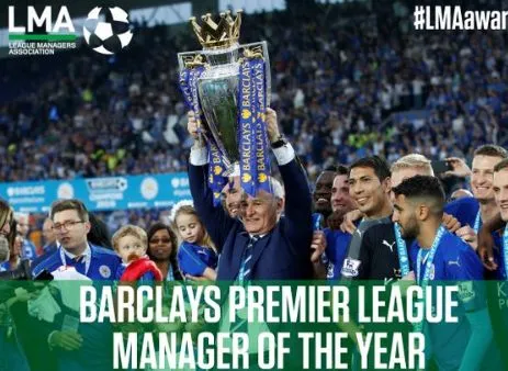 The Barclays Premier League Manager of the Year is Claudio Ranieri. #LMAawards @LCFC @premierleague pic.twitter.com/ait4mLMLqz