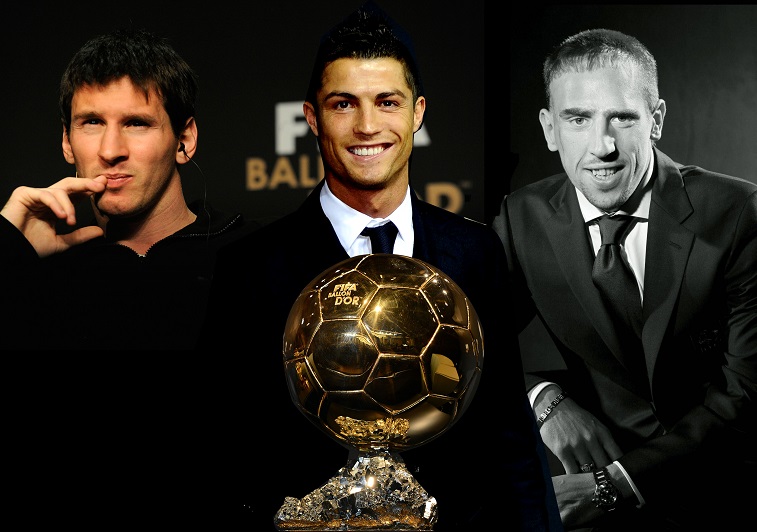 Cristiano Ronaldo : 27,99% Lionel Messi : 24,72%Franck Ribéry : 23,36%