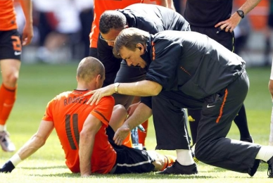 Dans un entretien accordé au quotidien allemand TZ, le kinésithérapeute du joueur Dick Van Toorn évoque le cas Robben avec optimisme : « S’ils ne veulent pas le faire jouer pour des raisons tactiques, d’accord, mais on ne peut pas dire qu’il n’est pas prêt à jouer. Si Arjen n’a plus mal, c’est qu’il est prêt » .