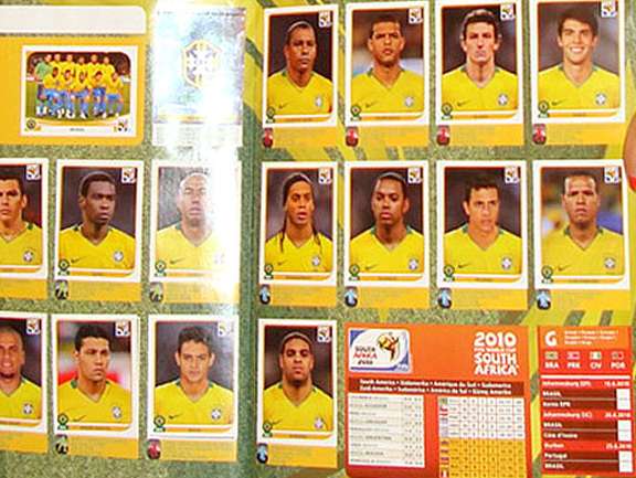 Marina de Sousa, fille d’un célèbre dessinateur brésilien, a posté sur internet une photo de la double page de l’album officiel Panini, publié avec l’autorisation de la FIFA, consacrée à la sélection auriverde où l’on retrouve un emplacement pour coller la vignette de Ronaldinho et d’Adriano.