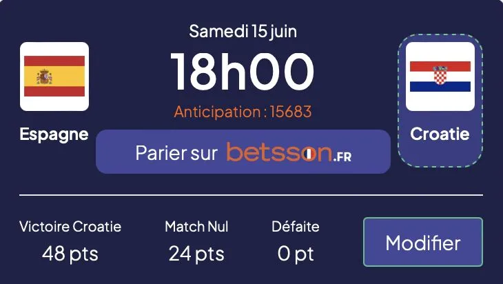Tout ne s’est pas passé comme prévu ce vendredi, puisque l’Écosse a pris une valise et n’a rapporté que 5 petits points grâce à un CSC de Rüdiger. Alors pour oublier ce mauvais choix, nous allons jouer la sécurité. Faux, on va tenter d’aller décrocher un Golden Pif (score supérieur à 50 points) avec la victoire de la Croatie face à l’Espagne. Les Croates ont montré face au Portugal (victoire 2-1) en match de préparation qu’ils ne venaient pas en Allemagne pour faire de la figuration et qu’ils comptaient bien sortir de cette poule de la mort comme ils l’ont fait en 2016 où ils ont fini devant… L’Espagne, qu’ils avaient battue 2-1. Et puis les deux dernières Coupe du monde l’ont rappelé : il faut toujours se méfier de la Croatie. Même si les jambes de Luka Modrić commencent à vieillir.