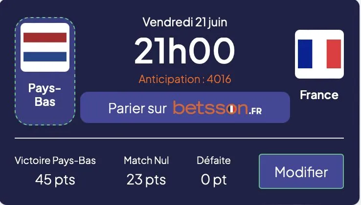 Depuis juin 2022, Kylian Mbappé a commencé sur le banc à 6 reprises en équipe de France. Le bilan ? 4 nuls et 2 défaites. Touché au nez, le Kyks devrait, selon toute vraisemblance, débuter sur le banc face aux Pays-Bas. Et c’est en partie pour cette raison que notre choix va se porter sur les Néerlandais. Alors non, les Pays-Bas n’ont pas été flamboyants lors de leur victoire face à la Pologne, mais ce serait mentir de dire que la France a régalé contre l’Autriche. Les potes de Grizou ont été dans la lignée du nul face au Canada en préparation, une équipe que les Oranje avaient battue 4-0 trois jours plus tôt. Et puis chez les Néerlandais, il y a de nombreux joueurs qui vont vouloir se montrer face aux Bleus : de Memphis Depay qui pensera au temps où il régnait en Ligue 1 à Xavi Simons qui voudra prouver qu’il est plus fort que les Parisiens en passant par Joey Veerman pisté par le PSG. Les Néerlandais vont donc vouloir reproduire ce match de poules de l’Euro 2008 qui s’était conclu par une victoire 4-1 face à la bande de Raymond Domenech. À la différence près qu’il ne devrait pas y avoir de demande en mariage du sélectionneur en direct à la télévision.