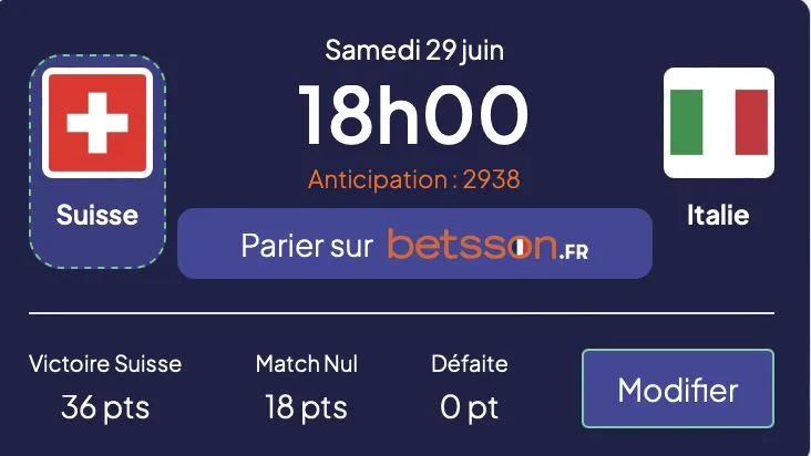 Jamais 9 sans 10 ? Eh bien non, puisque toutes les séries ont une fin, et les Helvètes vont bien finir par s’imposer contre leurs voisins italiens. Des Italiens qui seraient déjà éliminés de l’Euro sans ce but magnifique de Mattia Zaccagni à la 98e minute contre la Croatie lors du dernier match de poules. Dans le même temps, les potes de Granit Xhaka étaient à quelques secondes d’une victoire contre l’Allemagne. Ajoutez à cela la suspension de Riccardo « Maldini » Calafiori et l’Euro XXL des Suisses de Bologne (Michel Aebischer, Dan Ndoye et Remo Freuler) et vous comprendrez pourquoi c’est bien sur la Suisse qu’il faut miser. D’autant plus que depuis le passage à 24 équipes en 2016, le tenant du titre de l’Euro a toujours été éliminé en huitièmes de finale : l’Espagne en 2016, le Portugal en 2021 et donc l’Italie en 2024.