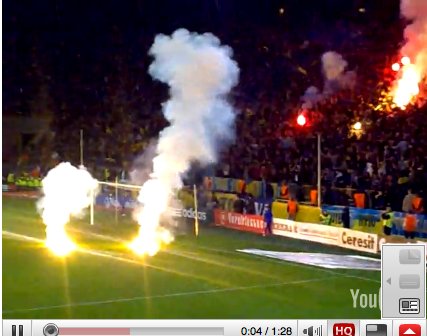 Les supporters ukrainiens aiment les spectacles pyrotechniques. Ils n’ont donc pas attendu bien longtemps après le début du match face à l’Angleterre, samedi, pour allumer les fumis.