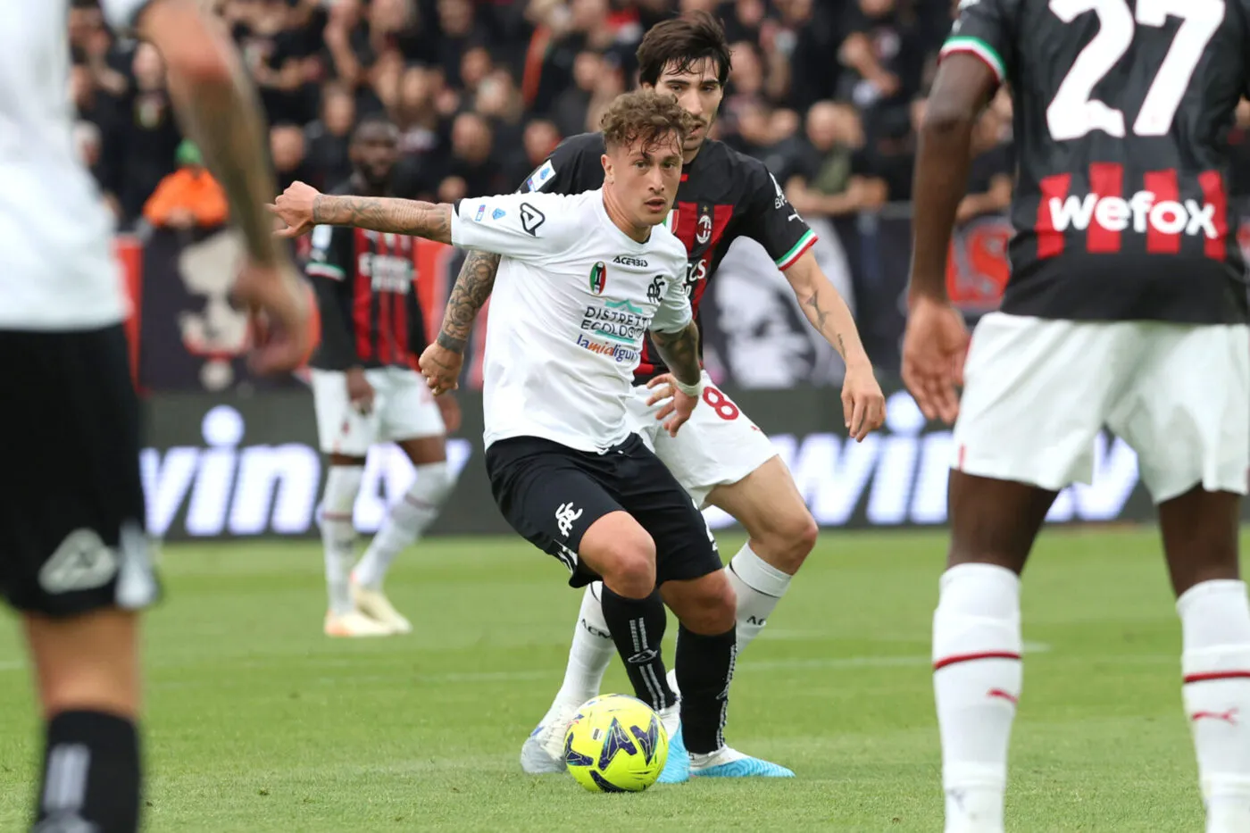 Après un premier acte équilibré où Sandro Tonali a touché le poteau et Théo Hernández a expédié un missile enlevé par Bartłomiej Dragowski, le piège s’est refermé sur les troupes de Stefano Pioli. Avec un bon M’Bala Nzola, les locaux ont fait la différence en fin de rencontre grâce à un homme : Salvatore Esposito. Le jeune milieu offensif international italien (22 ans) est à l’origine de l’ouverture du score de Przemysław Wisniewski, lui qui a frappé un corner repris par Kelvin Amian sur le poteau et prolongé dans les filets par le Polonais (1-0, 75e). Dix minutes plus tard, Esposito s’est chargé lui-même du break en expédiant un coup franc dans la lucarne de Mike Maignan (2-0, 85e). Suffisant pour maintenir Milan à distance, et s’offrir trois points précieux pour rester dans l’élite l’an prochain. Dans le camp d’en face, Milan ne profite pas de la défaite de l’Atalanta et du nul de la Lazio, et pourrait voir l’Inter prendre cinq points d’avance et la Roma fondre sur lui. En bref : ce n’est vraiment pas une bonne opération.