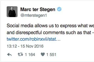 — Marc Ter Stegen (@mterstegen1) 15 novembre 2016