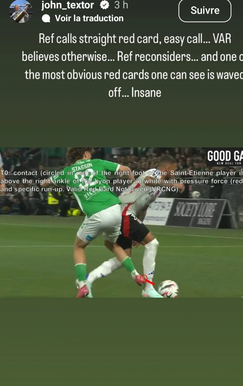 Sans parler de jeu, le dirigeant a donc tenu à défendre son équipe : « Huit erreurs pour une seule équipe… Il faut réfléchir à l’arbitrage. » Textor avait déjà fustigé la prestation de Monsieur Letexier sur les réseaux sociaux, en cours de partie.