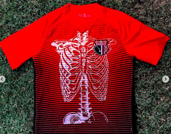C’est l’idée qu’a eu la marque Paradise Soccer Club pour fêter dignement Halloween. Une tunique nommée « Vendredi 13 » , qui possède toutes les caractéristiques pour flamber le 31 octobre prochain. Pour sa sortie, la marque hawaïenne n’a pas fait les choses à moitié en organisant un shooting photo avec des freestylers au Kualoa Ranch d’Oahu Island. Un lieu essentiellement connu pour les tournages de Jurassic Park, King Kong ou encore Godzilla. Orange orné d’un squelette qui recouvre la totalité de la tunique, il vous donnera peut-être l’occasion d’instaurer la peur chez l’adversaire, ou pas.