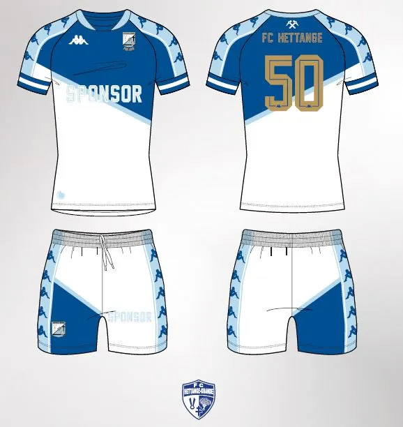 Pour représenter l’histoire du club au maximum, le néodesigner hettangeois a décidé d’allier le bleu roi, couleur de la ville, au bleu ciel qui est apparu sur les logos il y a une trentaine d’années. Concernant le blason, il a retravaillé des pioches qui représentent l’outil de travail qu’utilisaient les ouvriers dans cette réserve naturelle qui héberge aujourd’hui le stade de la même manière que se croisent les marteaux de West Ham. Les joueurs du club évolueront avec tout au long de la saison « On a vraiment envie de montrer que le club a 50 ans et qu’on est fiers de porter nos couleurs », a loué l’entraîneur.