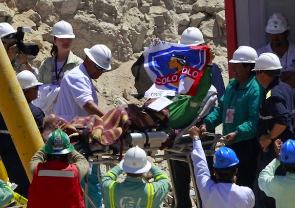 Mais ce qu’on sait moins c’est que le 17ème mineur remonté à la surface, Omar Reygadas, a sorti un drapeau du club de Colo Colo lorsque les ambulanciers l’ont emmené sur son brancard à l’hôpital pour passer une batterie de tests.
