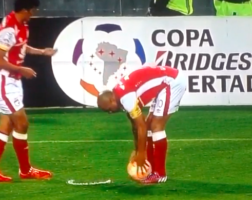 Daniel Torres, joueur de Santa Fe, a en effet empoché une jolie prime de match. Au moment de tirer un coup franc contre Colo-Colo, celui que l’on surnomme El Cabezon a été la cible de jets de pièces depuis les tribunes du Monumental, monnaie qu’il a pris soin de garder dans sa chaussette.