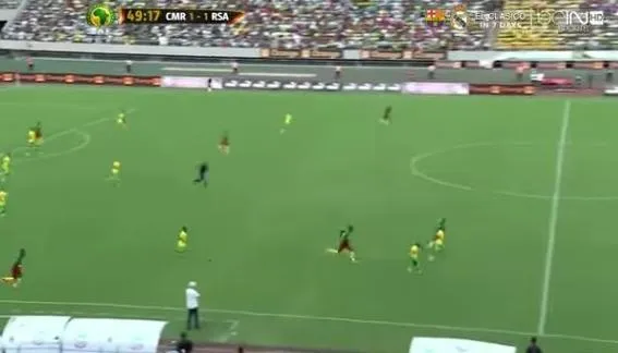Si le Cameroun n’a pu faire mieux qu’un résultat nul à domicile (2-2) contre l’Afrique du Sud ce samedi, c’est aussi grâce à ce coup de tonnerre provoqué par Hlompho Kekana, milieu des Mamelodi Sundowns, et auteur d’un des buts de l’année. Le joueur récupère bien le ballon dans son camp, voit le gardien camerounais avancé, et déclenche un lob d’exception à 60 mètres du but qui finit sa course au fond des filets. Parfait.