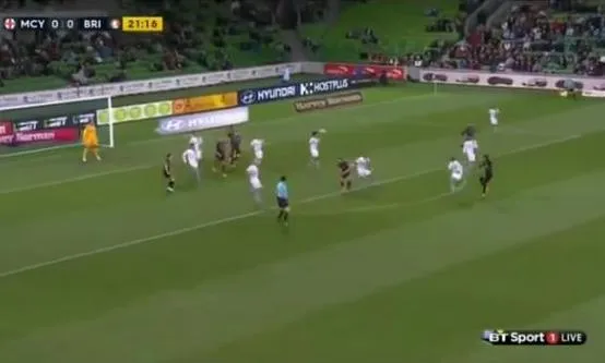 Le jeune milieu offensif aussie (23 ans) s’est en effet permis une jolie reprise de demi-volée à la retombée d’un corner, ne laissant aucune chance au gardien adverse. Un joli geste qui permet alors à Brisbane d’ouvrir le score, et qui méritait bien d’être célébré en allant boxer le poteau de corner.