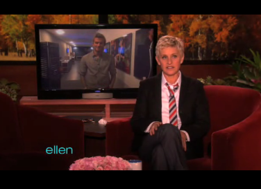 Pour les besoins de l’émission, le Spice Boy a dû participer à une caméra cachée dans laquelle il rend visite à une masseuse dans les loges. Le but : dire à la masseuse tout ce qu’Ellen lui balance comme conneries dans l’oreille. Et étrangement, le bougre est assez bon dans le rôle.