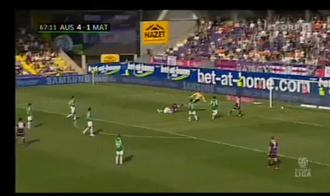 Et pourtant, Zlatko Junuzovic, milieu de l’Austria a fait taire tous les sceptiques. Comment ? En enchainant un amorti de la poitrine, un jongle et un retourné acrobatique pour inscrire le cinquième et dernier but de son équipe.