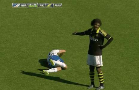 Opposé à l’AIK Solna lors de la 18ème journée du championnat suédois, Norrköping s’est incliné à domicile (1-2). Cette rencontre a été marquée par le duel que se sont livrés Mohamed Bangura et Andrea Johanssen. Le capitaine de Norrköping s’est notamment illustré par une simulation ridicule. Alors qu’il était au marquage sur Bangura, le coude de ce dernier a effleuré, pour ne pas dire caresser, son nez. Le Suédois s’est alors écroulé au sol, feintant la douleur sous le regard hilare de son adversaire.