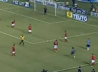 L’ambiance est chaude, le stade plein et les joueurs un peu surexcités. A l’image de ce “tacle” assez inhabituel sur un terrain de football. Un subtil mix entre un coup de pied circulaire et un free kick.