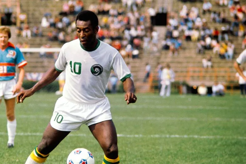Il est le pionnier de la popularisation du football aux États-Unis. De 1975 à 1977, presque vingt ans après son premier sacre en Coupe du monde, Pelé a régalé avec le maillot blanc si pur du New York Cosmos.